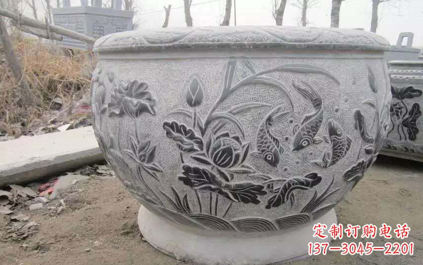 泰州仿古雕刻鲤鱼石浮雕水缸
