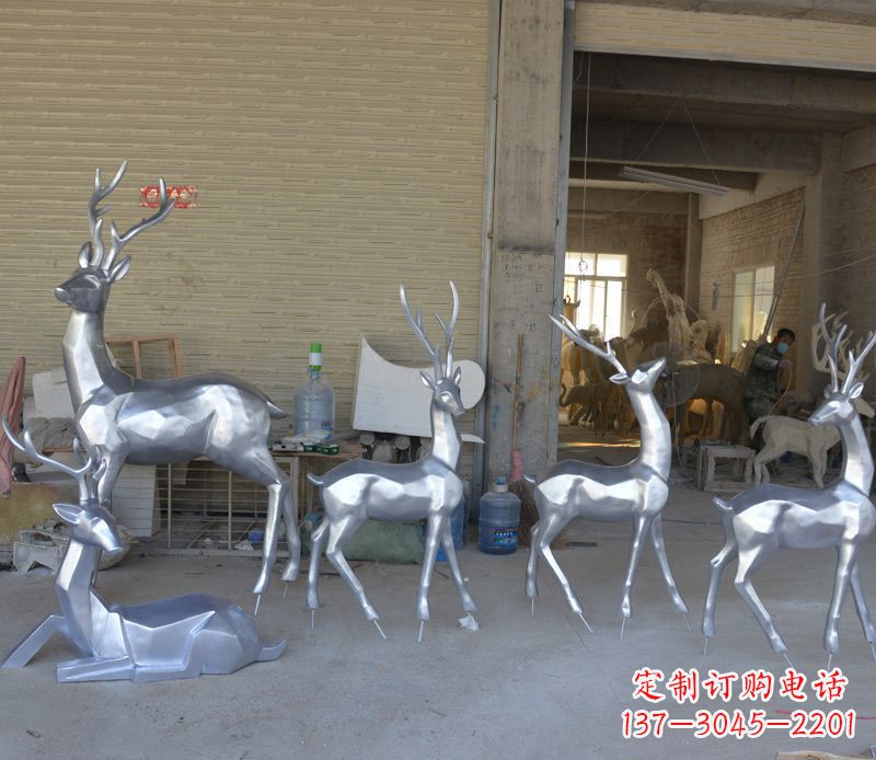 中领雕塑是一家的专业的不锈钢动物雕塑——鹿定制加工生产制造企业,公司拥有多款不锈钢动物雕塑——鹿模具,支持更换石雕、铜雕、玻璃钢及不锈钢等多种材质及不同制作风格、工艺。多年来,我公司所生产的不锈钢动物雕塑——鹿在泰州地区取得了客户的一致好评,并深受泰州人民喜爱。如果您也喜欢并想制作同款作品,欢迎致电联系我们,我厂将以最高效率为您服务;如果您想制作的作品与此作品并不相同,您可以提供修改意见或者直接将图片(草图、设计图、照片等)给我们,我们将为您按图定制,保证质量并深度还原您想要的效果!