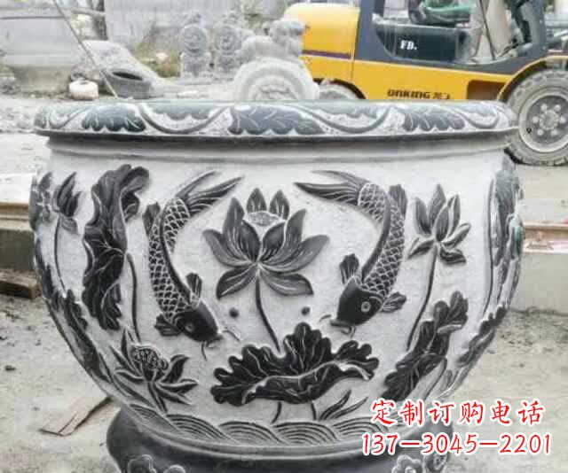 泰州鲤鱼石浮雕水缸,清新雅致