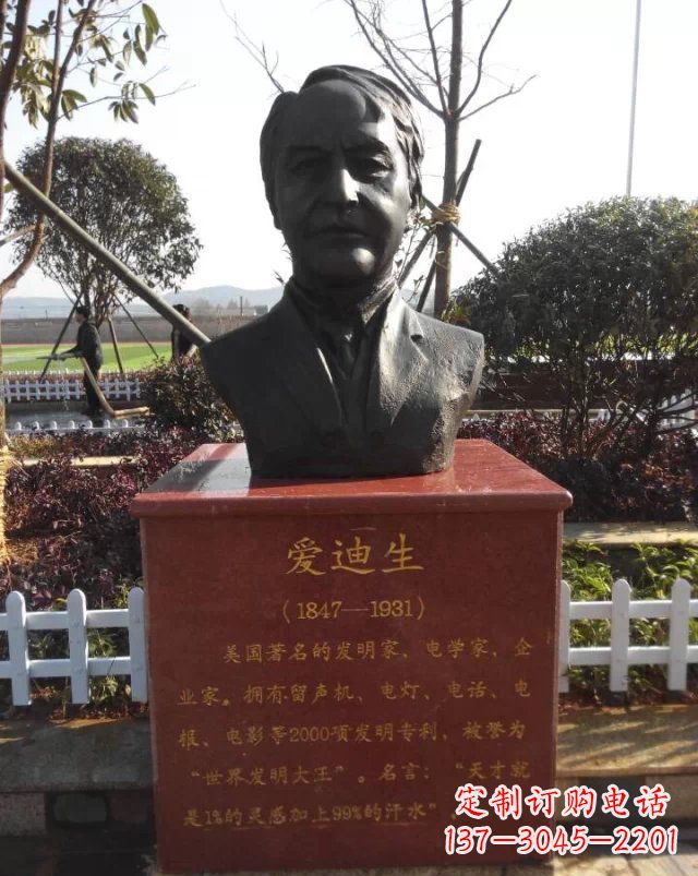 中领雕塑是一家的专业的西方名人爱迪生头像铜雕定制加工生产制造企业,公司拥有多款西方名人爱迪生头像铜雕模具,支持更换石雕、铜雕、玻璃钢及不锈钢等多种材质及不同制作风格、工艺。多年来,我公司所生产的西方名人爱迪生头像铜雕在泰州地区取得了客户的一致好评,并深受泰州人民喜爱。如果您也喜欢并想制作同款作品,欢迎致电联系我们,我厂将以最高效率为您服务;如果您想制作的作品与此作品并不相同,您可以提供修改意见或者直接将图片(草图、设计图、照片等)给我们,我们将为您按图定制,保证质量并深度还原您想要的效果!